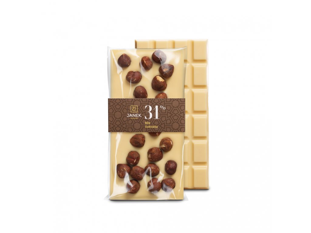 Sladká bílá čokoláda provoněná vanilkou. Žádnými aromaty nebo esencemi. Ale zrníčky pravé vanilky. K tomu přidejte ručně přebrané lískové ořechy a máte tabulku, která voní, křupe a zároveň se pomalu rozplývá na jazyku.