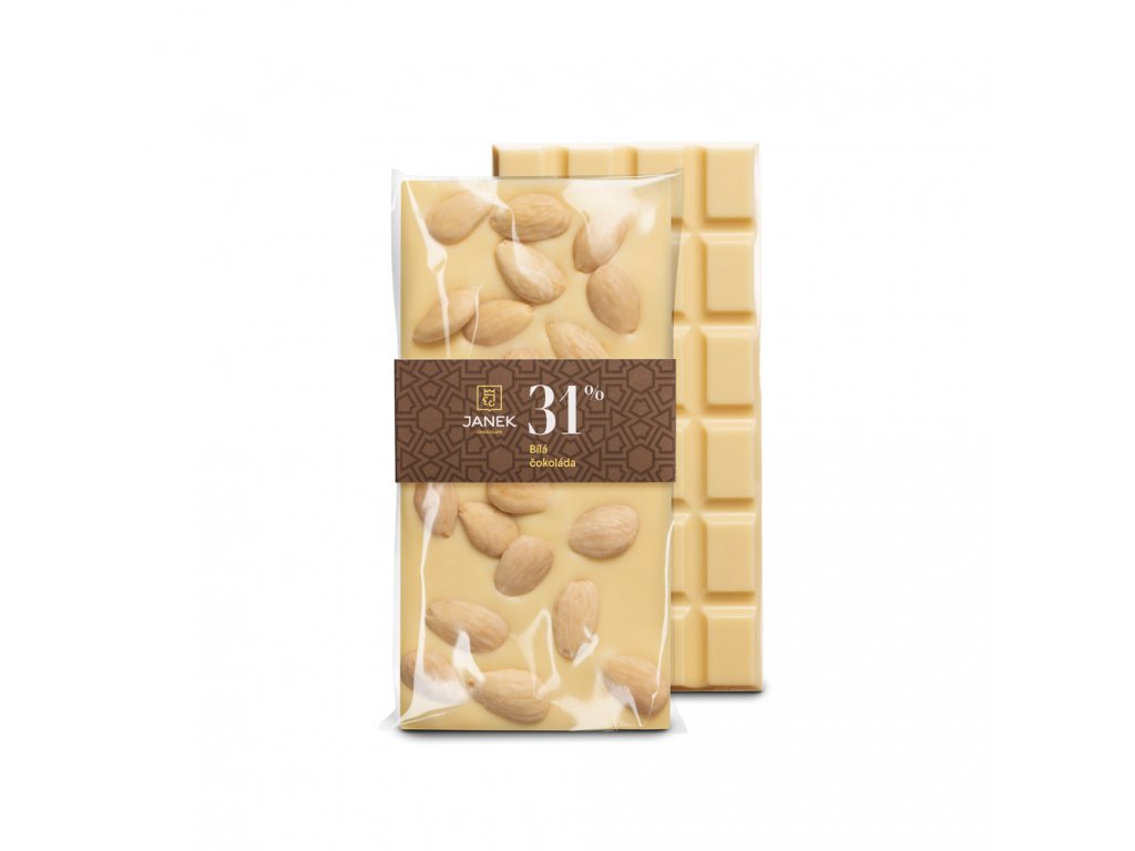 Sladká bílá čokoláda provoněná vanilkou. Žádnými aromaty nebo esencemi. Ale zrníčky pravé vanilky. K tomu přidejte ručně přebrané mandle a máte tabulku, která voní, křupe a zároveň se pomalu rozplývá na jazyku.