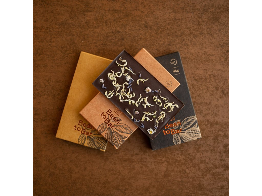 Pro výrobu této čokolády jsme se rozhodli pro spojení s přírodou. Vyšli jsme na louku a posbírali jsme květy sedmikrásky, levandule a hluchavky. Vytvořili tmavou 65% čokoládu bean to bar (čokoláda od bobu) a zasypali sběrem těchto rostlin. Jaro na čokoládě, ochutnejte sami !