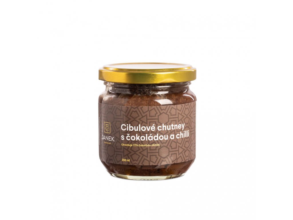 Složení: červená cibule (76%), třitinový cukr, ocet balsamico (vinný ocet, vařený hroznový mošt, obsahuje siřičitany), vinný ocet, čokoláda tmavá 100% bean to bar (Kakaové boby), cukr, (3%), chilli (0,3%), koření, citrusový pektin