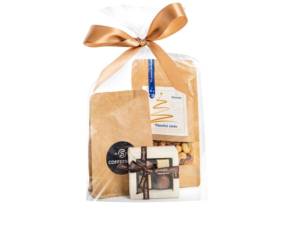 Je to takový náš moravský trojúhelník, kde vzniká to dobré. A přesně to najdete v tomto balíčku. Sladká chuť čokolády, jemná chuť kávy a slaná chuť oříšků. JANEK, Coffeespot, Nutsman, to je přesně ono ! Dokonalá kombinace pro vaše chuťové pohárky, kterou jsme dali pod jedno víko. S tímto dárkem rozhodně vedle nešlápnete.