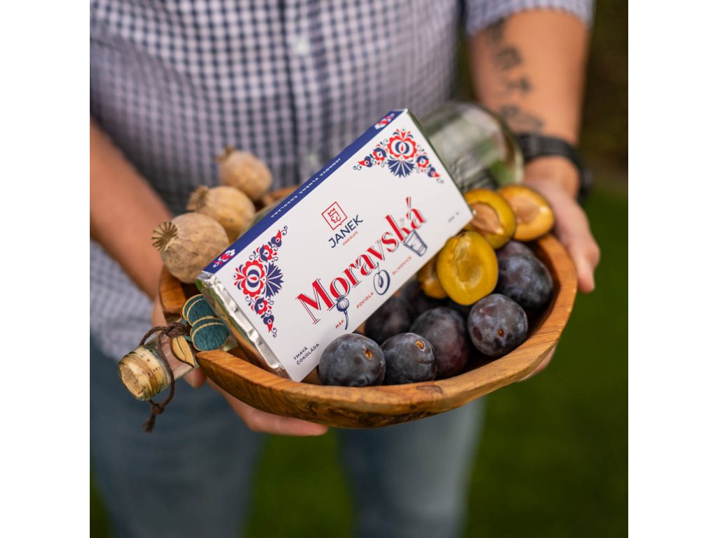 Ptáte se, kdy přijde na ten moravský hřeb večera ? Právě teď ! Přece nesmí chybět ta pravá moravská slivovica. To je ten nejznámější kus Moravy , tedy pořádná slivovice od našeho kamaráda z lihovaru Žufánek. Vašek s Martinem jsou dlouholetí kamarádi, kteří společně už vytvořili velké množství projektů a chutných produktů, kde se spojila chuť alkoholu, bylinek a čokolády. Posledním z nich mimo tuto tabulku je pánský adventní box plný čokolády a limitované mirabelkovice.