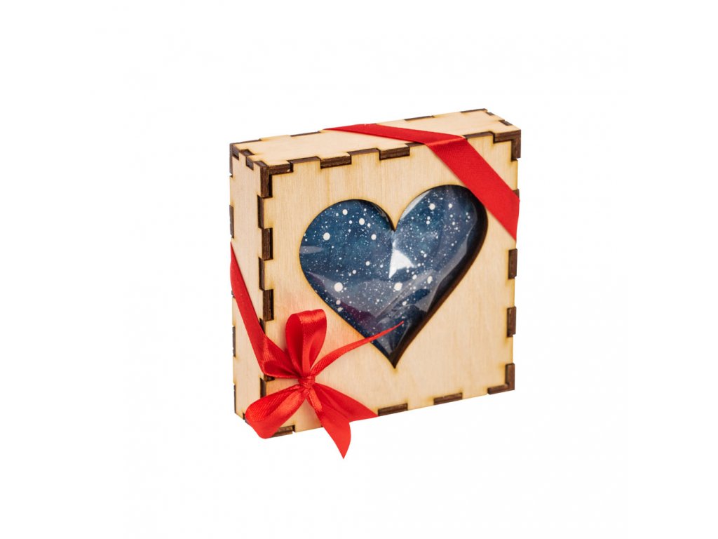 A protože se za naše červené srdce nestydíme, dali jsme ho do dřevěné krabičky s otvorem. Ať se můžete zamilovat ještě před rozbalením.