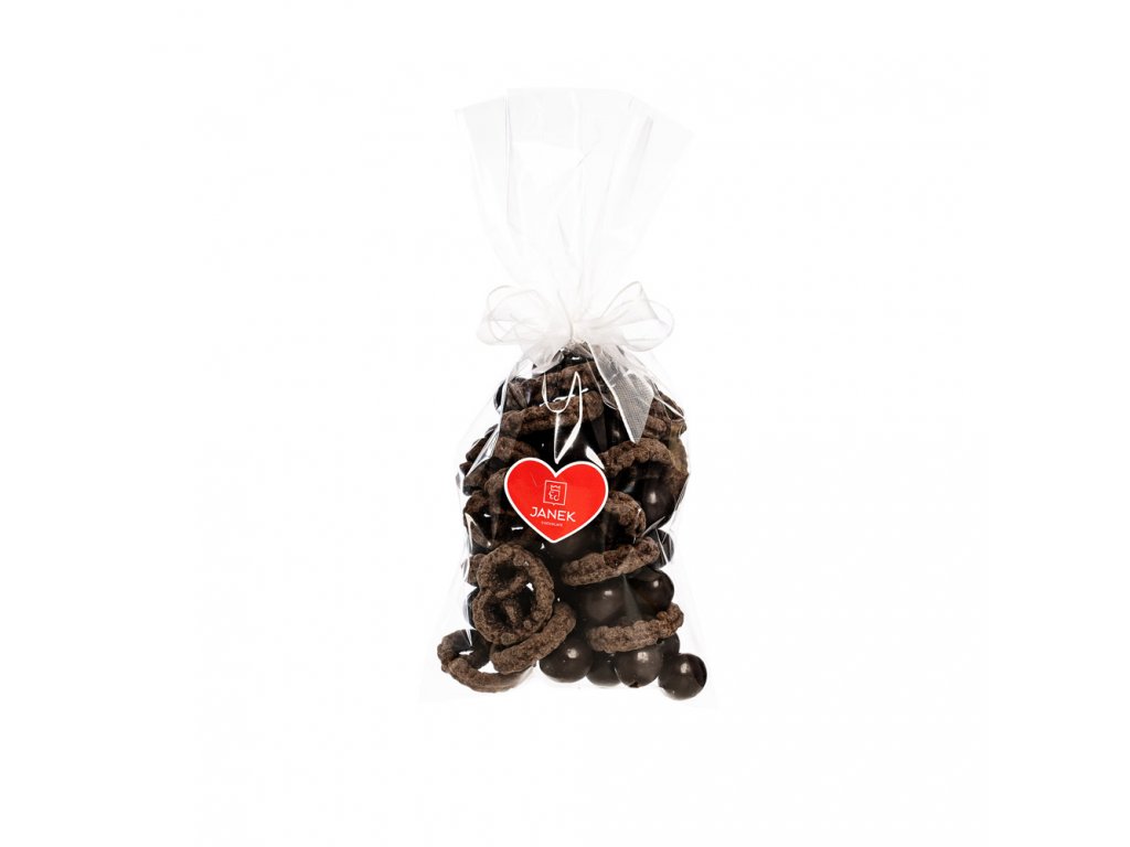 JANKŮV tmavý jarní mix - lískové ořechy a preclíky v čokoládě