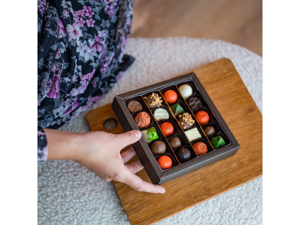 Každá pralinka je mistrovským dílem, zdobená v teplých podzimních barvách a zabalena s láskou do stylové krabičky s podzimními motivy. Ideální jako luxusní dárek pro vaše blízké, nebo jako lahodná odměna pro vás samotné.
