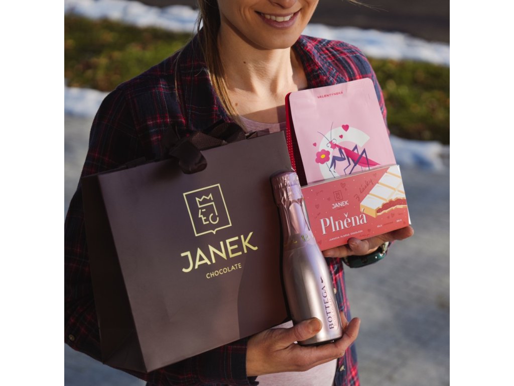 Někdy není potřeba vybírat dlouho. Stačí jeden krásně sladěný dárek, který potěší na první pohled i při každém doušku a soustu. Dárková taška plná lásky spojuje tři pečlivě vybrané produkty, které k sobě ladí chutí, náladou i valentýnskou atmosférou.
