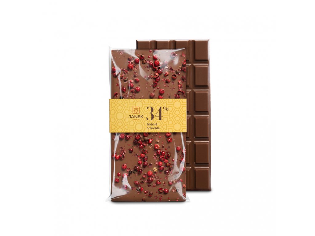 Ingredience: kakaová hmota 34 %, kakaové máslo, sušené mléko, barevný pepř (2%), cukr, emulgátor: sójový lecitin, aroma: přírodní vanilka