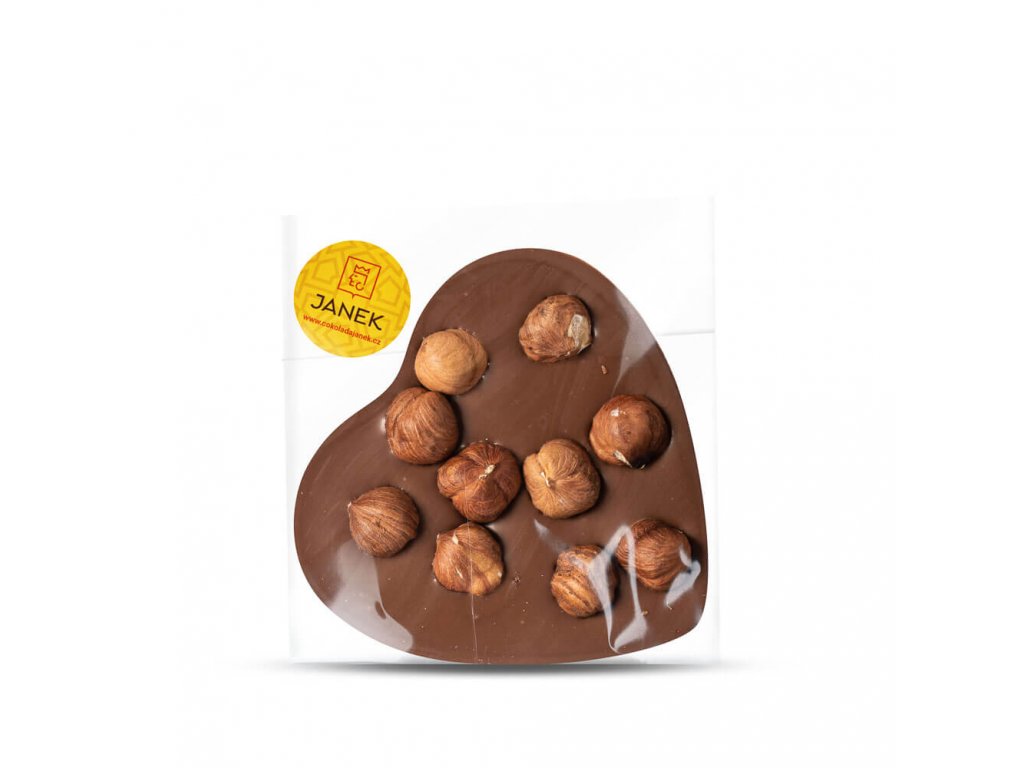 Velké mléčné čokoládové srdíčko s lískovými ořechy