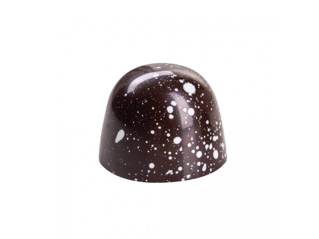 Složení: hořká čokoláda (kakaová hmota, kakaové máslo, cukr, přírodní vanilka, emulgátor: sójový lecitin), slivovice (33%), barvivo.