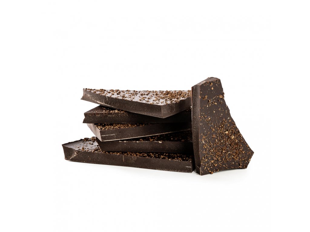 Výrazná hořká čokoláda provoněná vanilkou. Žádnými aromaty nebo esencemi. Ale zrníčky pravé vanilky. K tomu přidejte pár nadrcených zrn kávy Ethiopia Limu Gr.2 a máte tabulku, která voní, křupe a zároveň se pomalu rozplyne na jazyku.